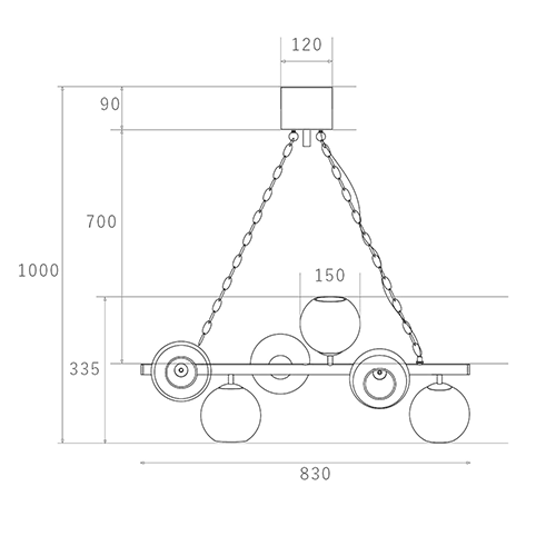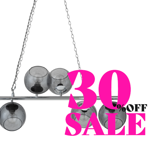 ビアリッツ6は6つのガラスシェードが四方を照らすダイナミックなペンダントランプ。