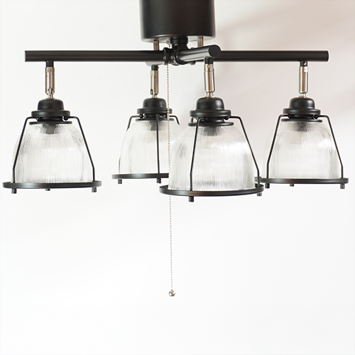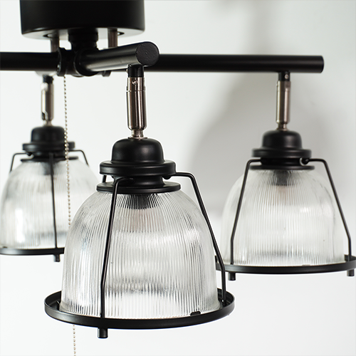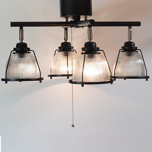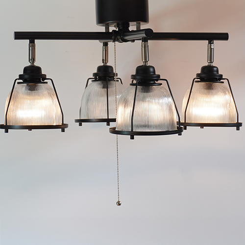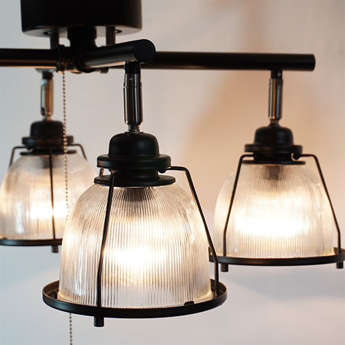 ガラスシェードは、縦ラインにカットを入れ、光が拡散するように設計しました。